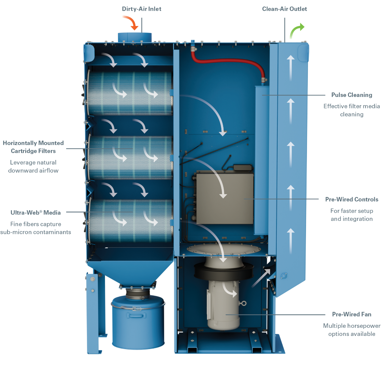 Teniendo esto en cuenta, su colector de polvo podría estar ondeando una bandera blanca si tiene más de 15 años, se ha convertido en un pequeño pozo de dinero para reparaciones, los ventiladores y/o el motor son menos eficientes que los modelos nuevos, el polvo sigue escapándose de vuelta a sus procesos y sus filtros se están degradando demasiado rápido.