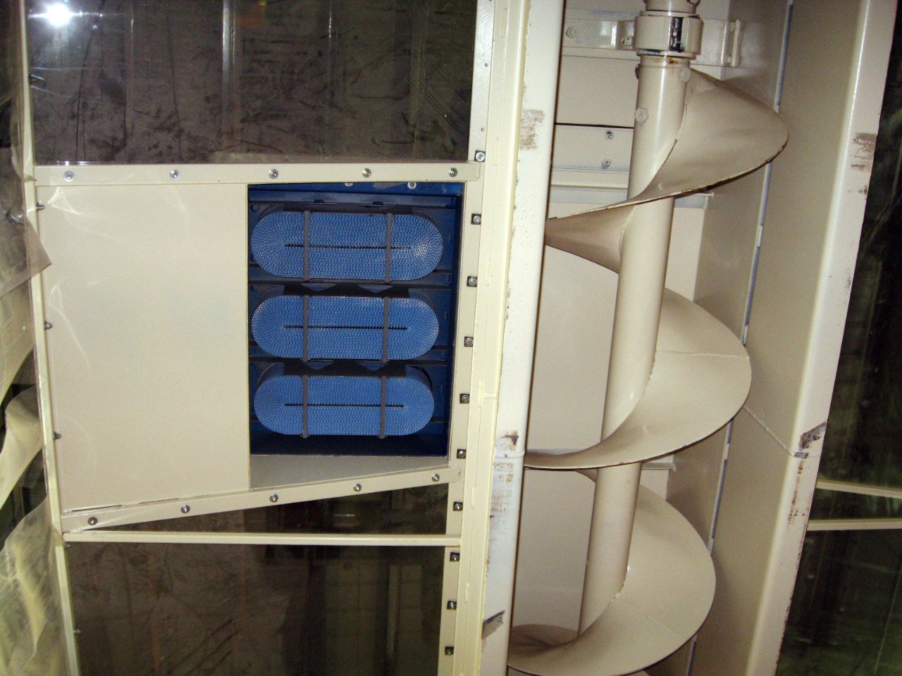 La conception d’origine comprenait trois dépoussiéreurs centraux (un dépoussiéreur situé en dehors de chaque compartiment de stockage). Cependant, un revendeur Donaldson Torit a proposé une solution plus efficace. Ce revendeur a suggéré qu’il serait plus efficace d’utiliser une solution intégrée en installant cinq dépoussiéreurs Dalamatic Insertable Donaldson Torit sur le toit de chaque compartiment de stockage. Les ventilateurs fixés à chaque Insertable extraient désormais l’air poussiéreux depuis les filtres. Bien que les deux solutions nécessitent un déplacement de 566,34 m³ (20 000 pieds cubes) d’air par compartiment de stockage, une pression statique moins élevée est requise avec la solution intégrée Dalamatic Insertable étant donné que toutes les pertes des conduits ont été éliminées. Cela a permis des économies en électricité de plus de 18 000 $ par an. Le client bénéficie également des avantages suivants :