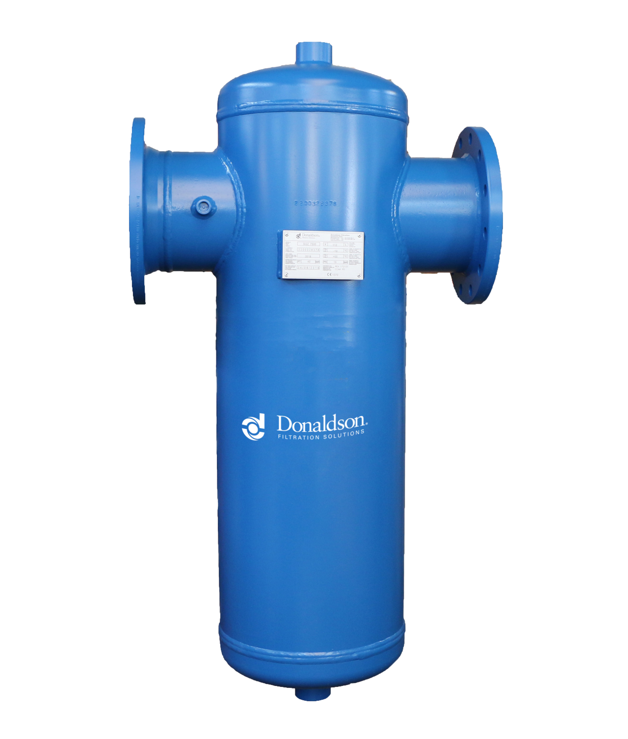 Sfruttando la tecnologia di separazione centrifuga, i separatori industriali Donaldson rimuovono acqua, aerosol di olio e solidi dai flussi di aria compressa con cali di pressione minimi. Il loro design robusto e resistente alla corrosione supporta portate da 119 a 11.000 m³/h (da 70 a 6.470 scfm).