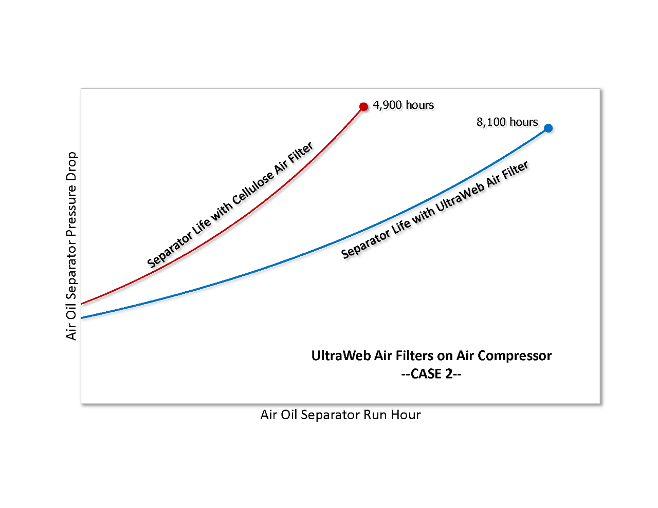 Figura 13: I filtri dell'aria Ultra-Web hanno aumentato la vita dei separatori aria-olio in due casi di studio. Figura 13: I filtri dell'aria Ultra-Web hanno aumentato la vita dei separatori aria-olio in due casi di studio.
