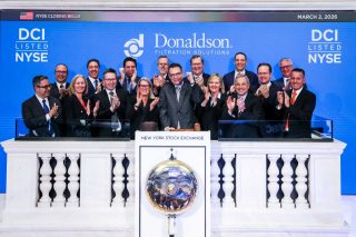 ドナルドソンは、111年の歴史の中で7人目となるリッチ・ルイスCEOへの交代を祝い、2026年3月2日、ニューヨーク証券取引所にて、エグゼクティブ・リーダーシップ・チームのメンバーがクロージング・ベル®を鳴らした。