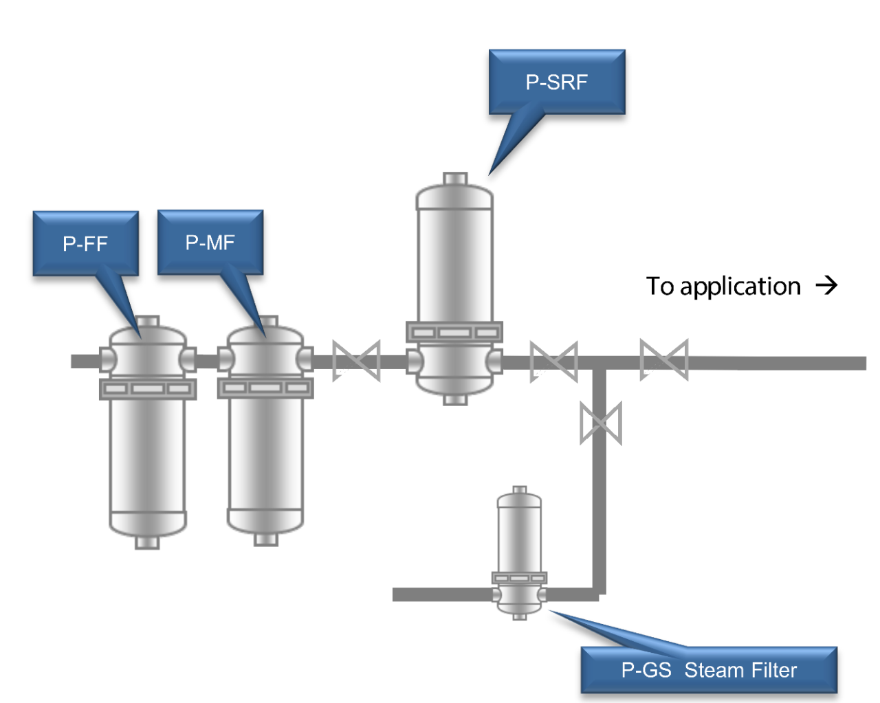 Zapobieganie zanieczyszczeniom: Sprężone powietrze może być źródłem skażenia chemicznego i mikrobiologicznego. Cząstki kurzu, węglowodory i wilgoć mogą być zbierane z otoczenia i zagęszczane przez sprężarkę powietrza. Do strumienia sprężonego powietrza mogą przedostać się również aerozole oleju ze środka smarnego sprężarki oraz cząstki rdzy z przewodów. Jeżeli zanieczyszczenia te nie zostaną usunięte, mogą negatywnie wpłynąć na bezpieczeństwo i jakość żywności.