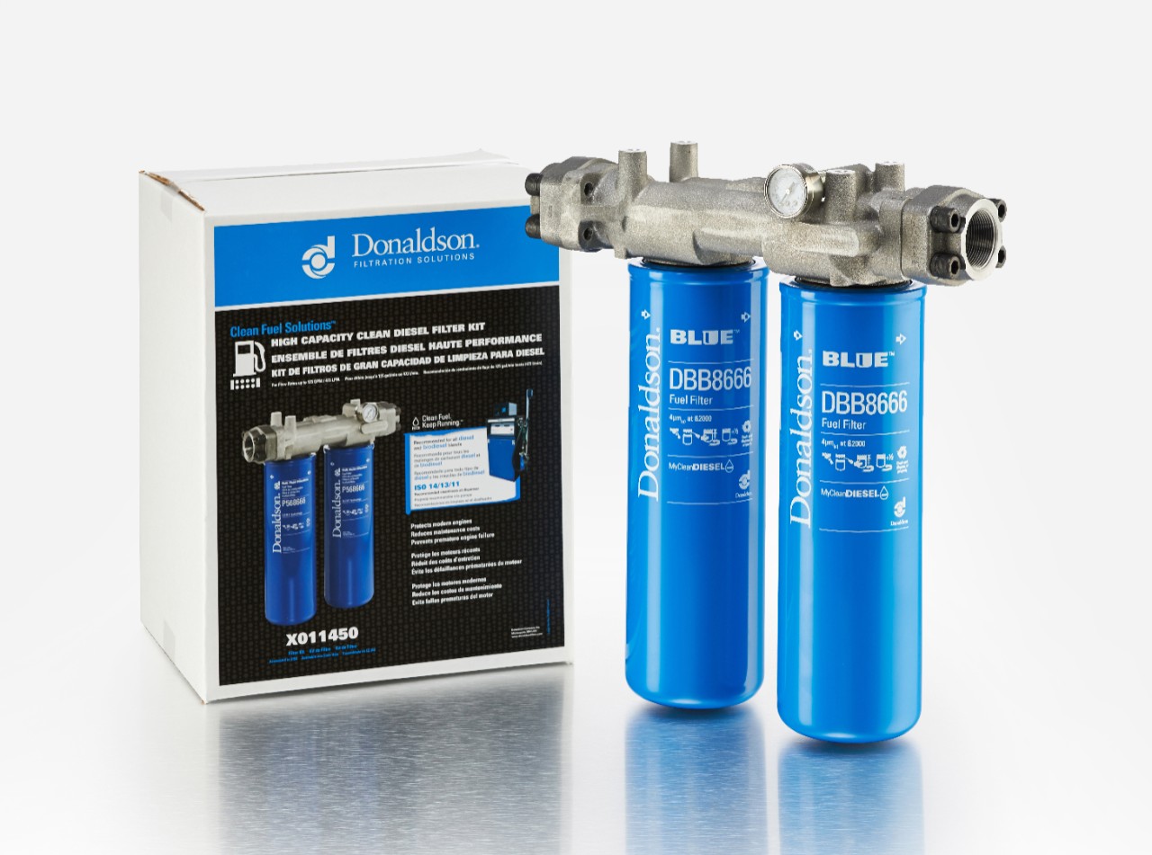 Os kits da Donaldson, fáceis de instalar, oferecem uma camada eficaz de filtração na saída e proteção entre a bomba e seus veículos e equipamentos. Recomendados para todas as misturas de diesel e biodiesel, os kits estão disponíveis para bombas de abastecimento, caminhões de serviço e tanques de distribuição, e podem lidar com vazões de até 125 gpm/473 lpm.