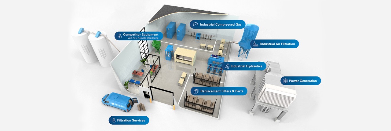 Oferecemos conhecimento especializado certificado no local para monitorar, gerenciar e realizar a manutenção de equipamentos de qualquer marca, incluindo: Reparo de coletores de pó, auditorias de sistemas de ar comprimido, manutenção de sistemas hidráulicos e substituição de filtros de turbinas a gás.