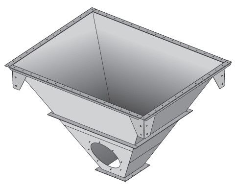 Mais uma vez, muitas vezes o tamanho padrão da descarga da moega é equivocadamente considerado suficiente para lidar com todas as características do pó. Lembre-se de que a natureza fluida da coleta de pó muda completamente quando você a manuseia a granel. Além disso, não se esqueça do impacto do estreitamento das moegas em seus pontos de saída.