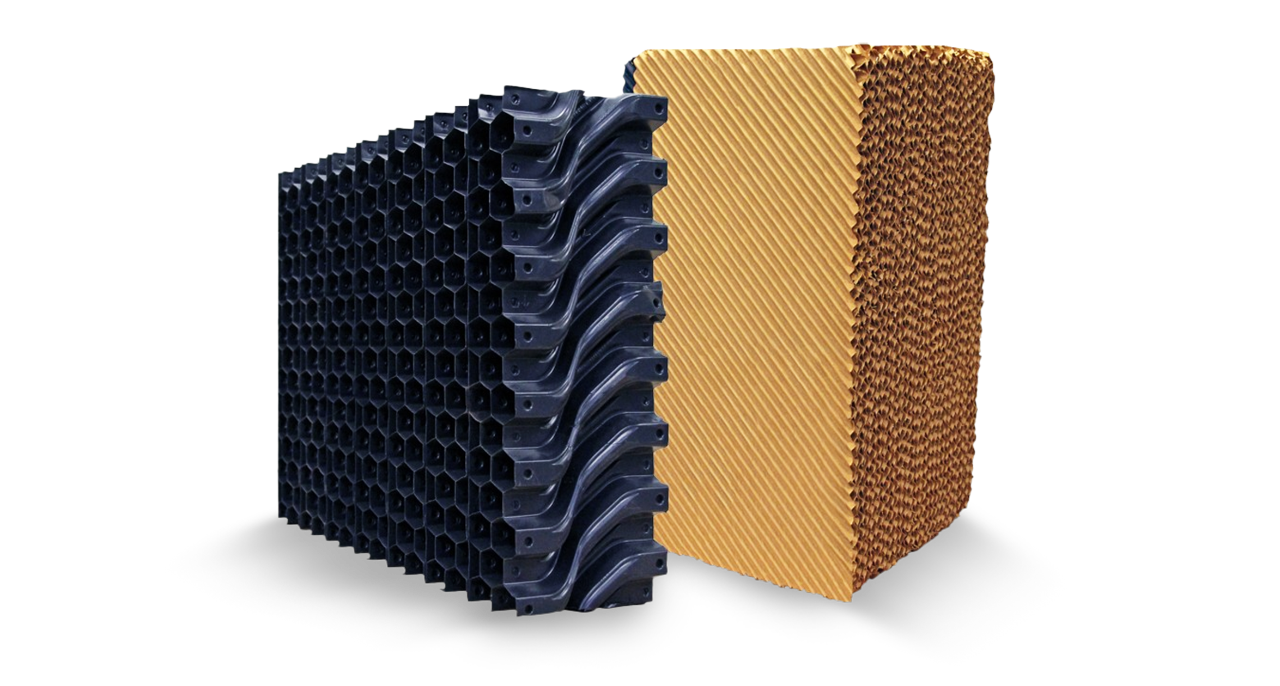 Впускной воздух охлаждается, проходя через смачиваемый материал испарительного охладителя. Поток охлажденного воздуха направляется к компрессору, а рекуперированная вода циркулирует внутри системы.
