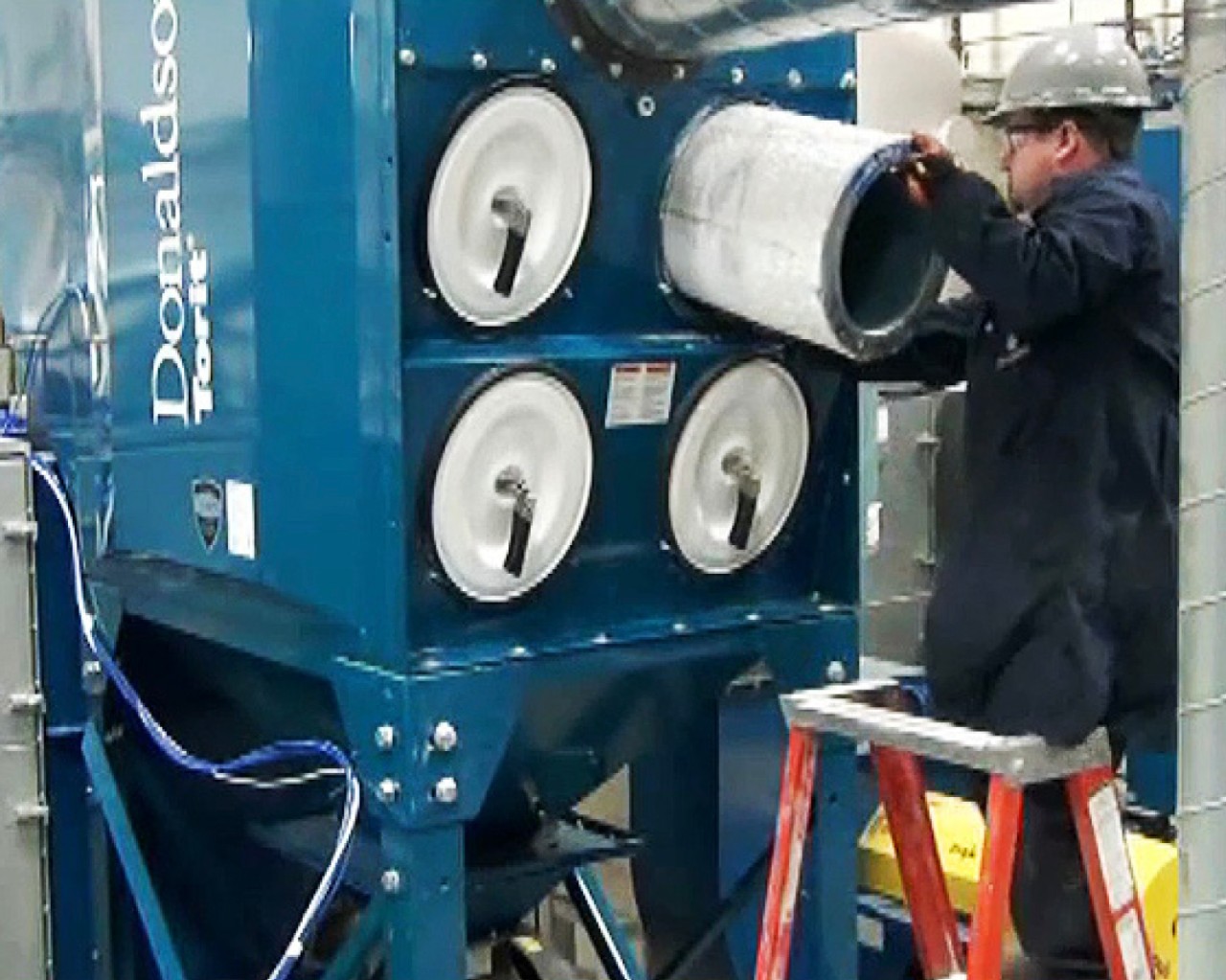 Наконец, процесс замены фильтра в пылесборнике с нисходящим потоком предполагает более простую замену элементов и меньшее вредное воздействие уловленных загрязнений на оператора, чем в пылесборнике более старой конструкции с вертикально подвешенными фильтрами. У пылесборника с нисходящим потоком обычно имеются крышки, обеспечивающие доступ только к нескольким картриджам одновременно. Это может быть большим преимуществом, если пылесборник находится на улице, в месте, подверженном воздействию ветра. Для старых пылесборников с вертикально подвешенными фильтрами, как правило, требуются большие дверцы доступа, при открытии которых весь объем загрязненного воздуха начинает воздействовать на оператора и прилегающую зону.