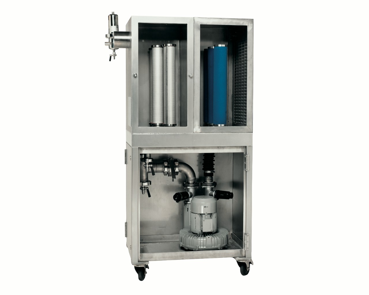 这种紧凑型滤芯系统包括预过滤器和压缩空气无菌过滤器,以及采用移动式设计的低压鼓风机。有多种尺寸可供选择,流速从 30 到 910 m³/h(17 到 536 scfm)不等,可满足不同的生产需求。