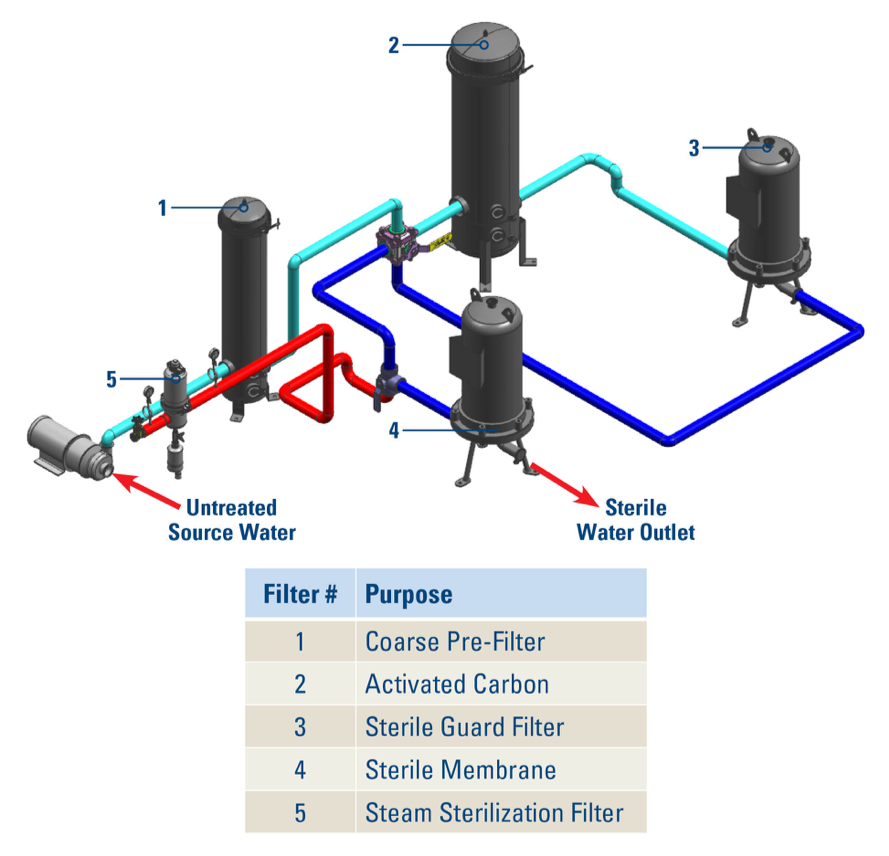 截留硬质颗粒会过早磨损微滤芯,而微滤芯主要用于滤除微生物。由于微滤芯成本昂贵,故需设计一系列预过滤滤芯滤除各种沉淀物以保护微滤芯。